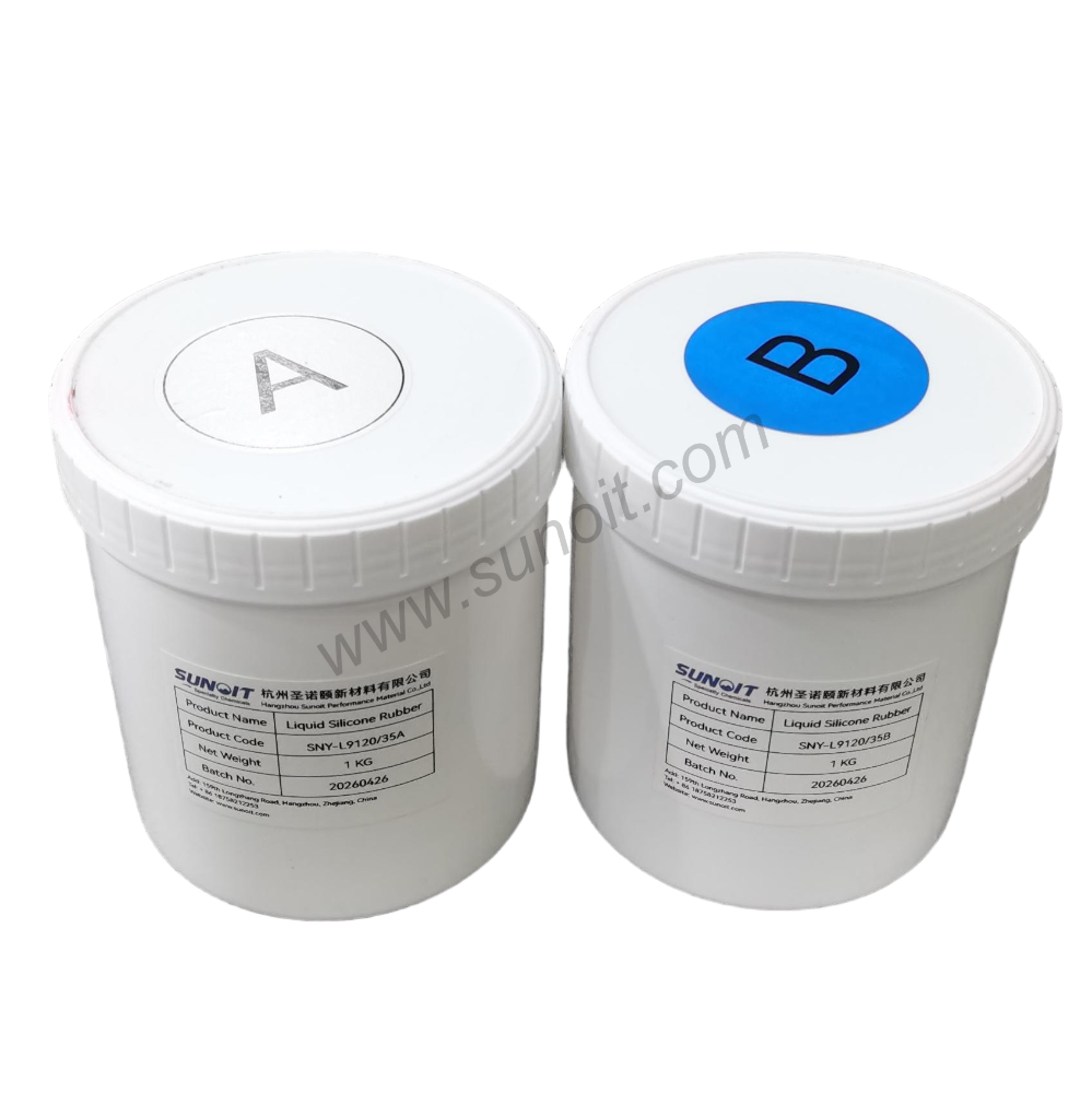 SNY-L9120-35A/B is a two-component heat cure LSR, with excellent adhesion to woven and non-woven substrates, cotton fabric, etc. The ratio of A and B component is flexible to adjust.